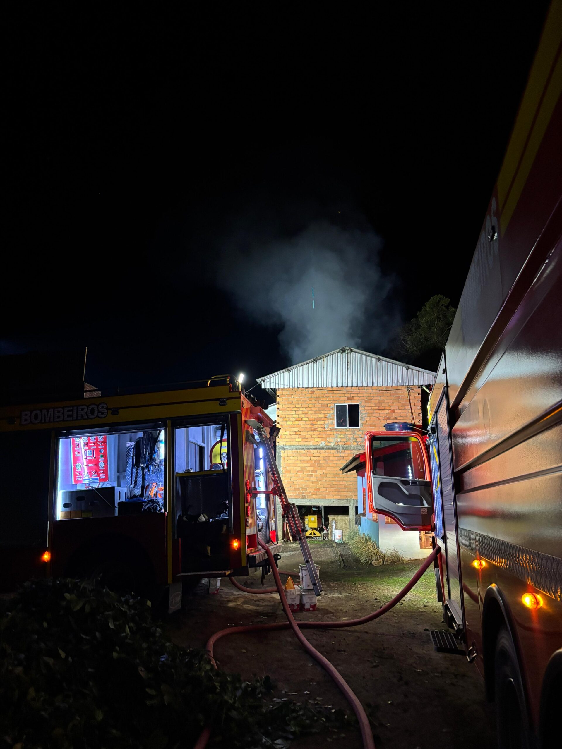 Por volta das 19h50 desta quinta-feira (24), as guarnições das viaturas do Corpo de Bombeiros foram acionadas via COBOM (Central de Operações Bombeiro Militar) para atender um incêndio em um barracão de uma ervateira, utilizado para secagem de folhas de erva-mate, na Estrada Geral de Fartura, em Canoinhas.