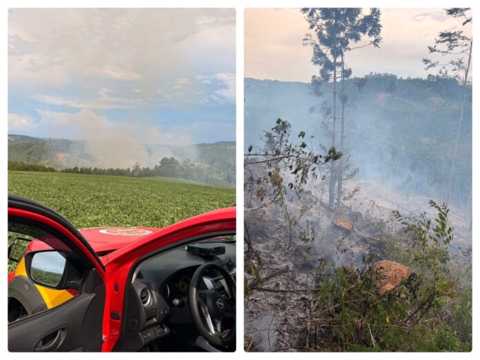 InícioPolíciaBombeiros combatem incêndio de grande proporção em área de reflorestamento de eucalipto
