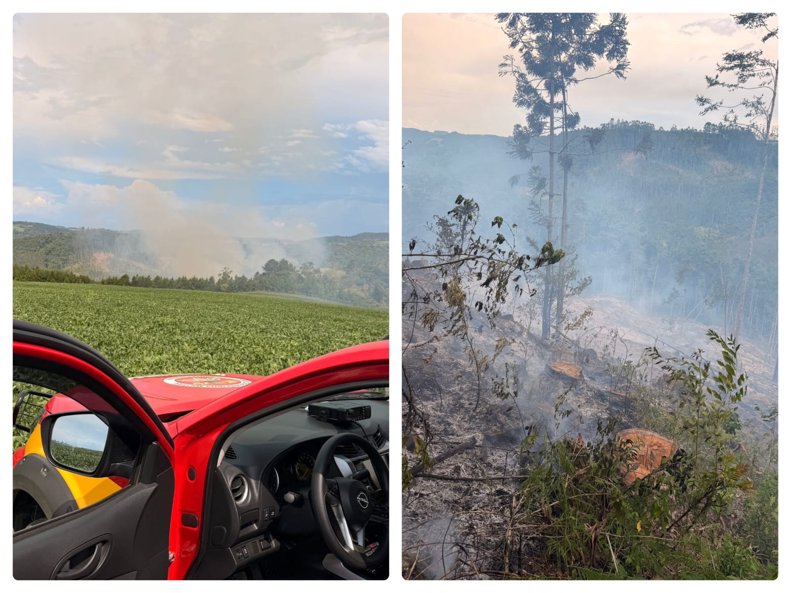 Por volta das 14h20 desta quarta-feira (28), as guarnições do Corpo de Bombeiros atuaram no combate a um incêndio de grandes proporções em área de vegetação, dentro de uma propriedade particular de reflorestamento de eucalipto, na localidade de Rodeio Grande, em Monte Castelo.