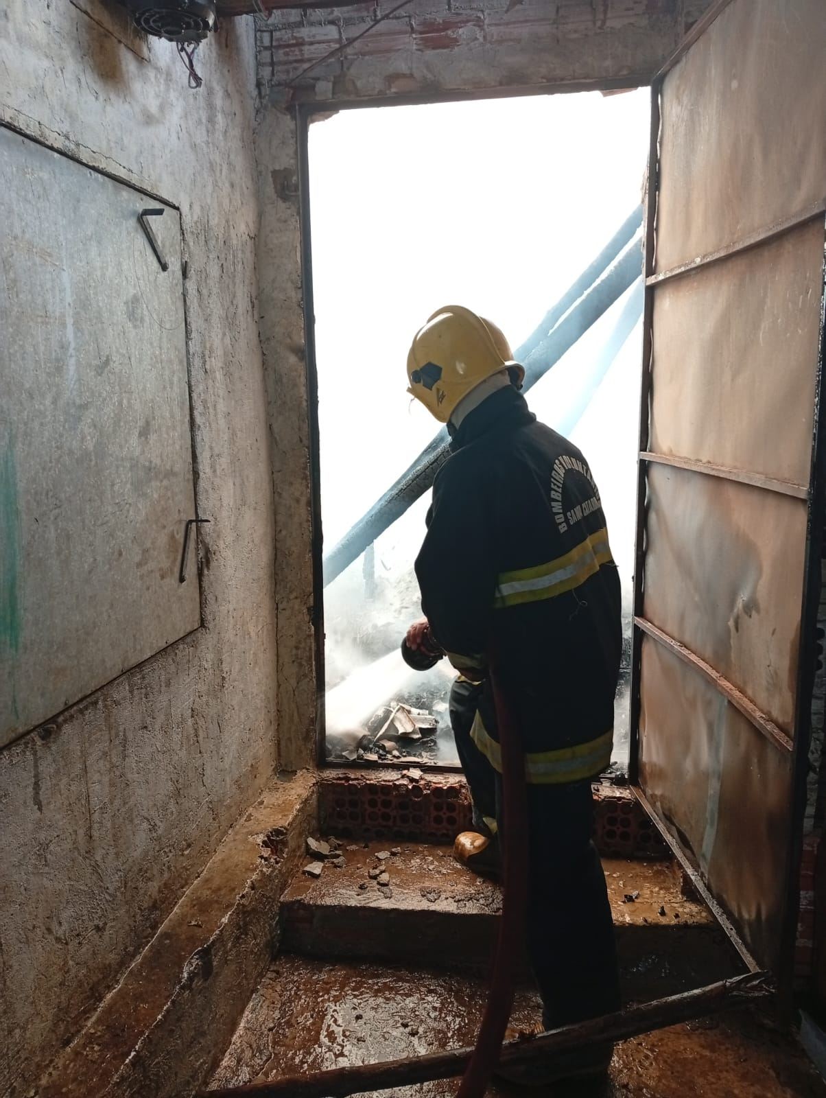 Bombeiros combatem incêndio em estuda de secagem de fumo
