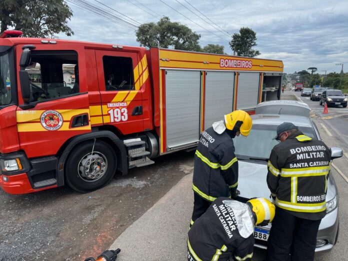 InícioPolíciaBombeiros controlam princípio de incêndio em carro na SC-418