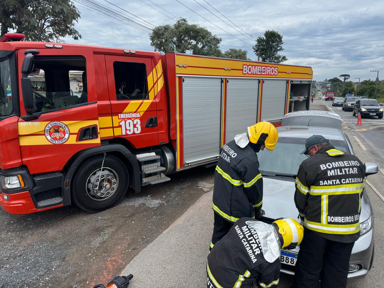 Bombeiros controlam princípio de incêndio em carro na SC-418