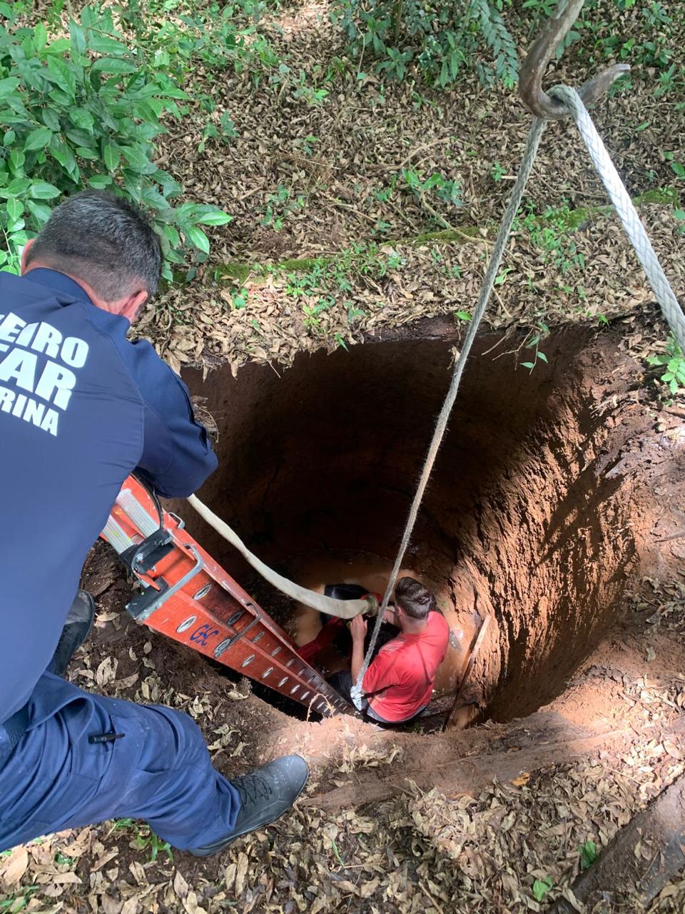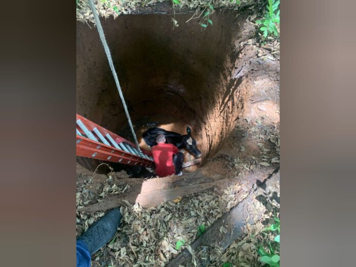 O poço possuía uma profundidade estimada de 4 metros, contendo aproximadamente 1,5 metros de água. O animal estava agitado e com sinais de cansaço.