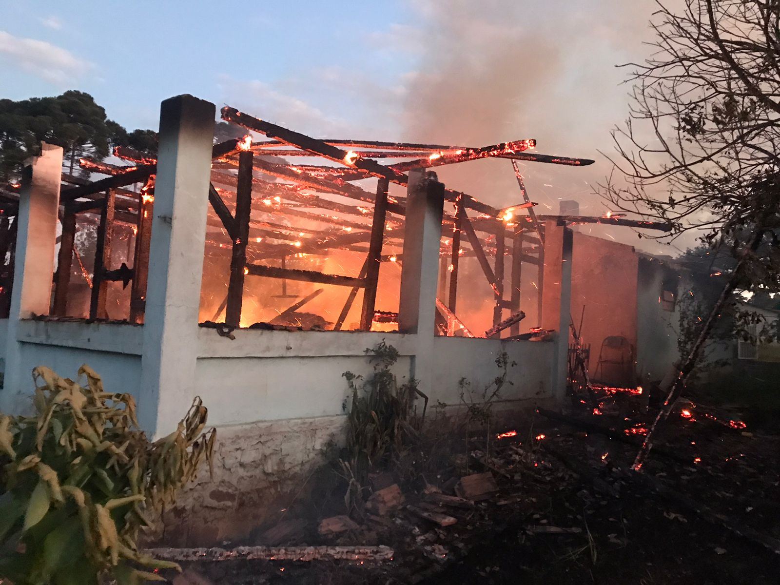 Informações iniciais davam conta de que uma pessoa poderia estar dentro do imóvel, e ao chegar no local, foi verificado que o incêndio se encontrava de fase de queima livre, sendo então estabelecido uma linha de ataque direto as chamas e possível localização da vítima.