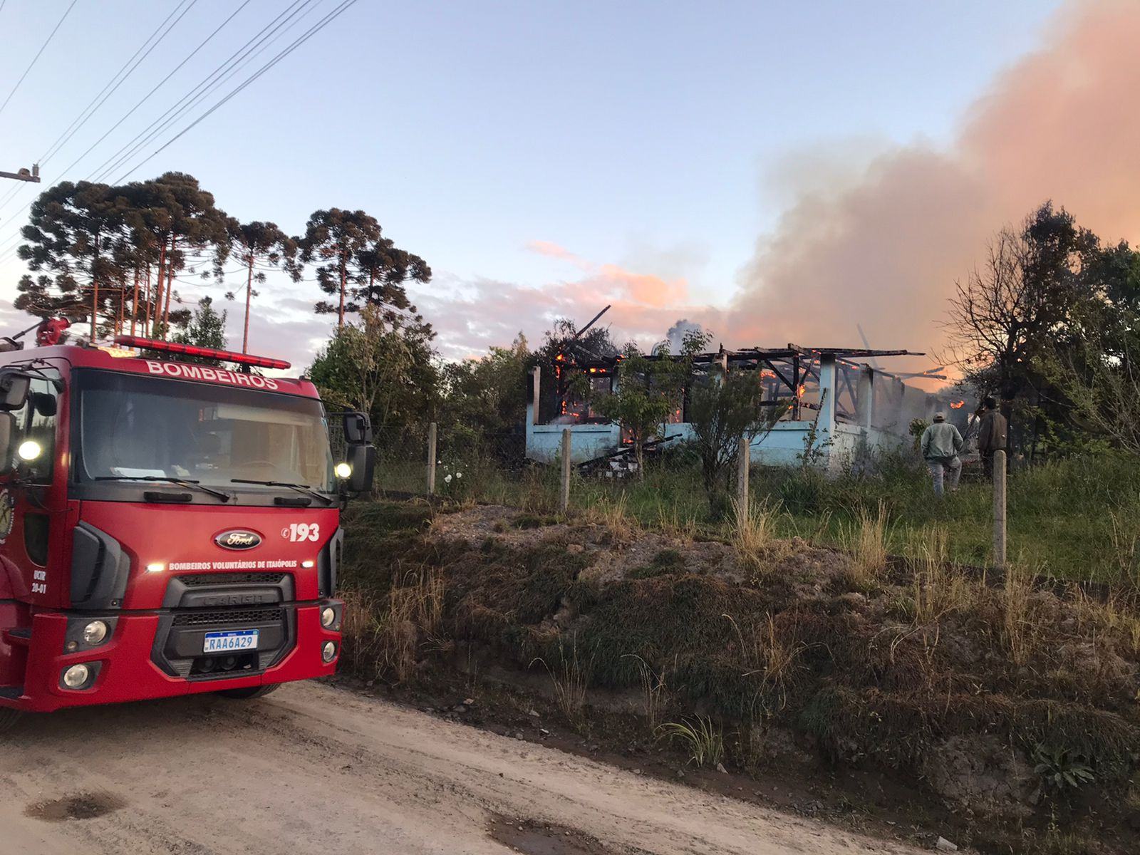 Por volta das 18h deste domingo (19), a central de operações dos bombeiros voluntários recebeu um chamado para atender um incêndio, na localidade de São João, interior de Itaiópolis.