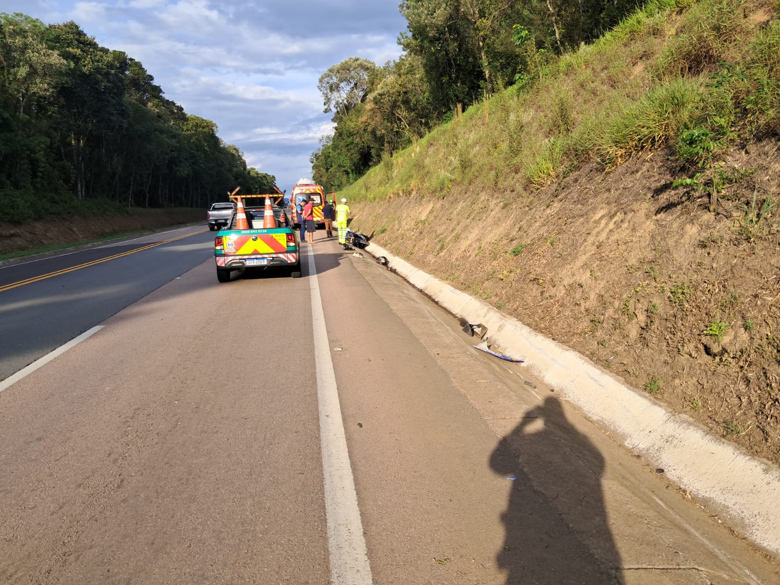 O condutor da motocicleta já havia sido atendido pela ambulância da concessionária da rodovia, não se encontrando mais no local no momento da chegada da guarnição.