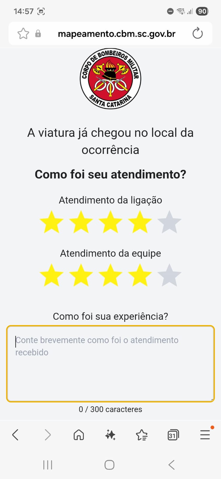 Essas avaliações são encaminhadas diretamente ao sistema interno do CBMSC, permitindo que a corporação monitore a qualidade do atendimento e implemente melhorias contínuas com base no retorno da população.
