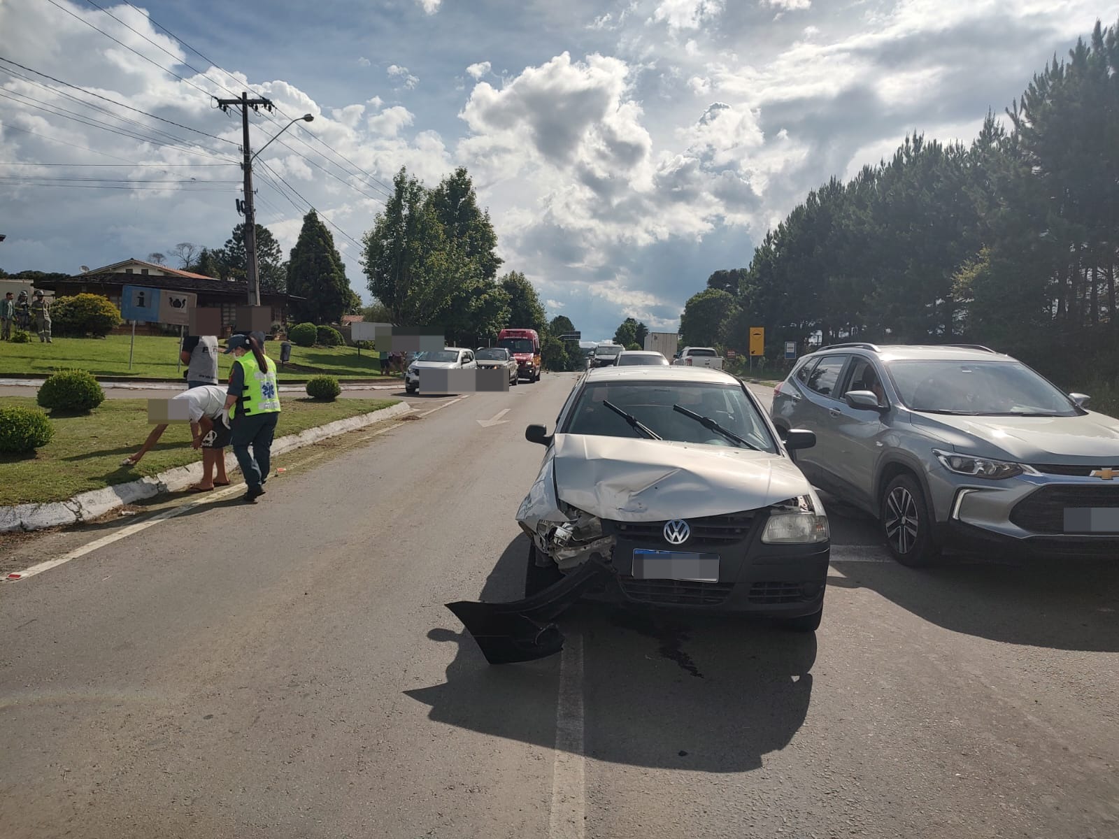 A colisão traseira envolveu um Fiat/Mobi e um Volkswagen/Gol. No veículo Mobi estavam o condutor, um homem de 41 anos, uma mulher de 37 anos e uma idosa de 76 anos, todos conscientes, orientados, caminhando e sem lesões aparentes.