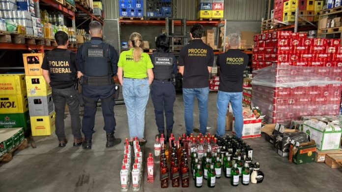 Ação do Procon/SC, Guarda Municipal, Polícia Federal e Procon de Florianópolis contra bebidas falsificadas. Foto: Divulgação/Procon/SC