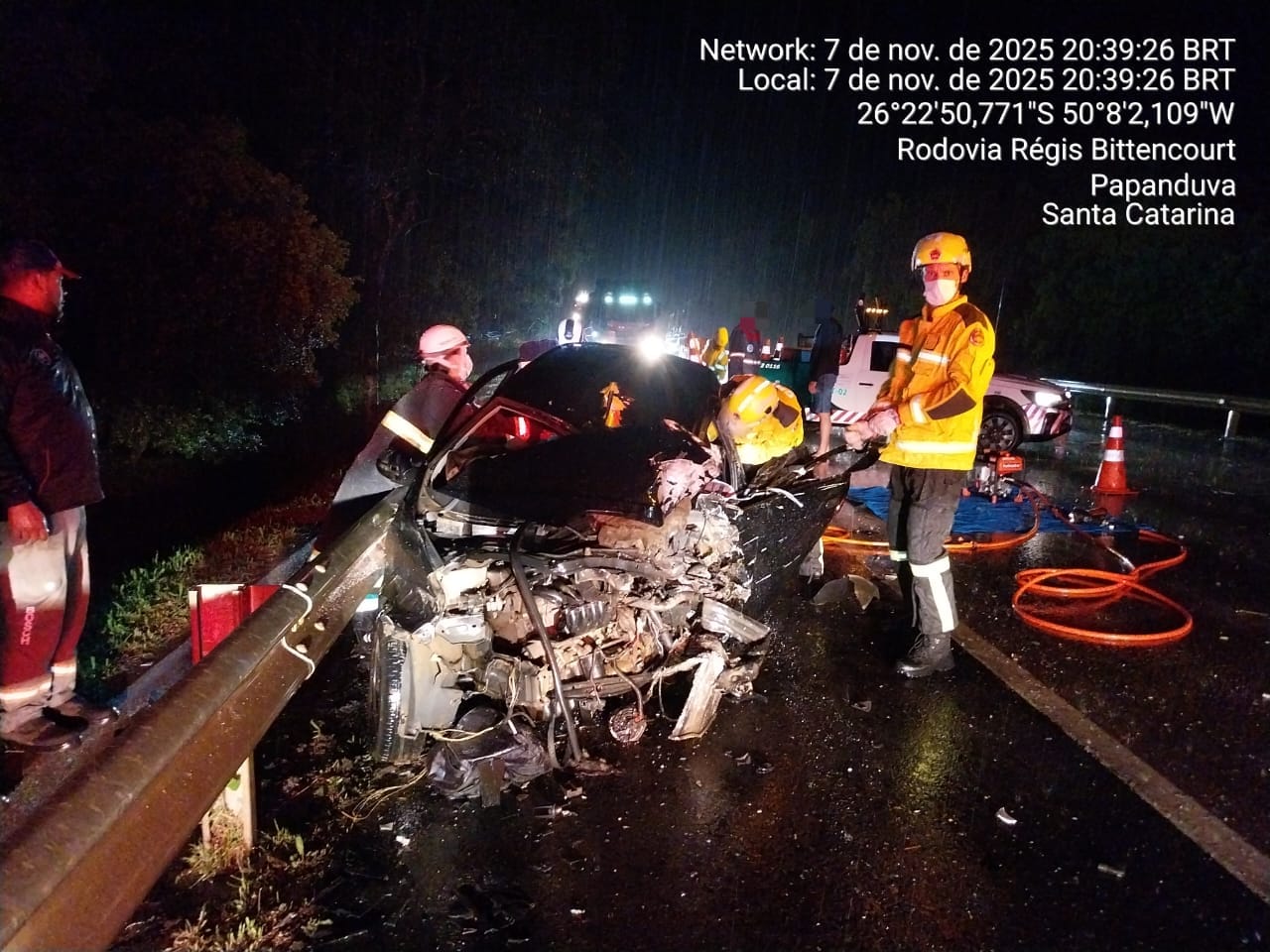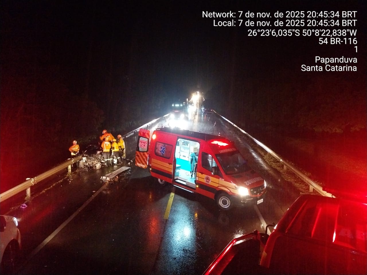 Por volta das 21h desta sexta-feira (7), o Corpo de Bombeiros Militar de Papanduva foi acionado pela Arteris Planalto Sul para prestar apoio em uma ocorrência de acidente de trânsito na Rodovia BR-116, Km 50, Bairro Industrial, em Papanduva.