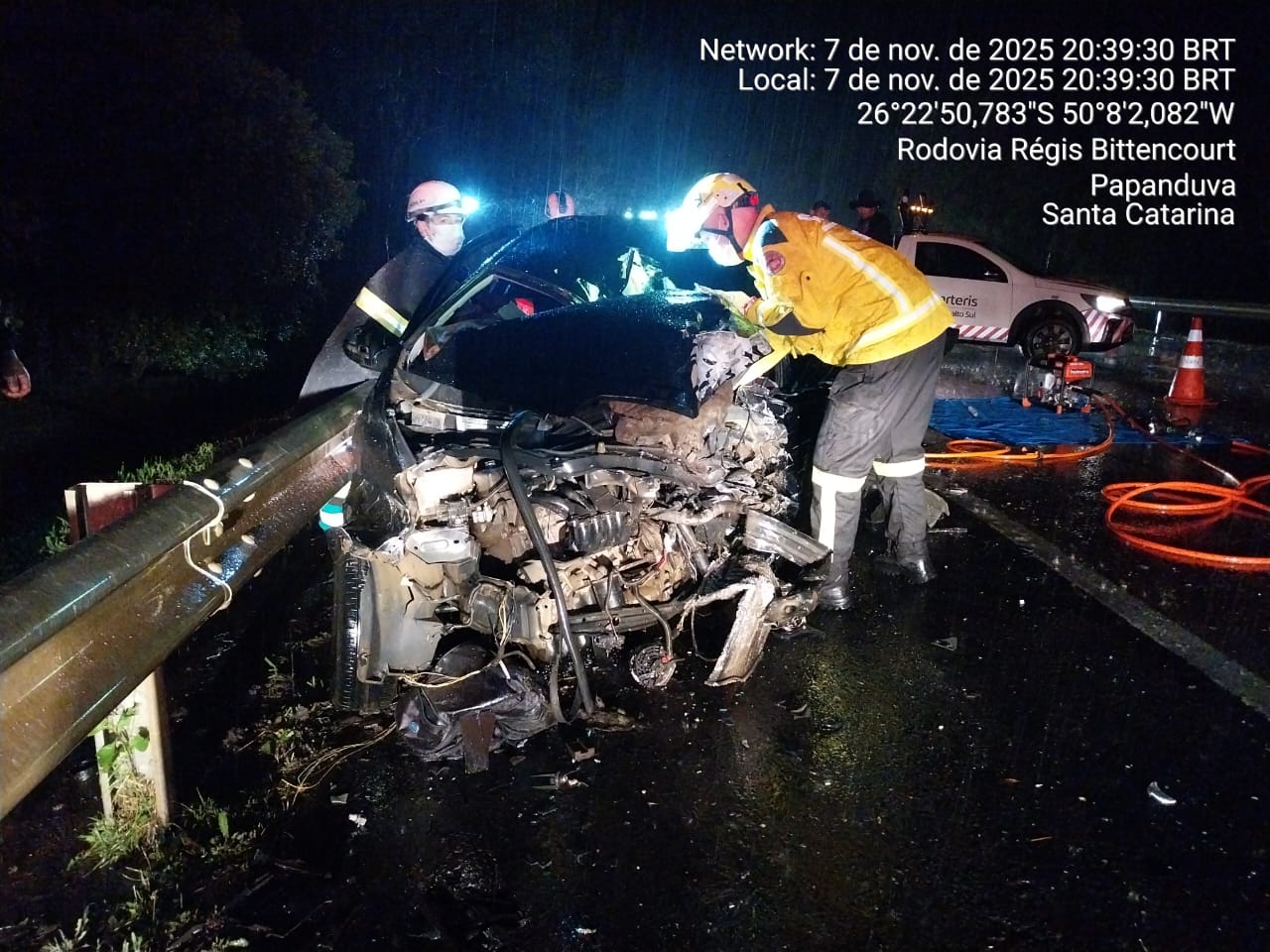 Por volta das 21h desta sexta-feira (7), o Corpo de Bombeiros Militar de Papanduva foi acionado pela Arteris Planalto Sul para prestar apoio em uma ocorrência de acidente de trânsito na Rodovia BR-116, Km 50, Bairro Industrial, em Papanduva.