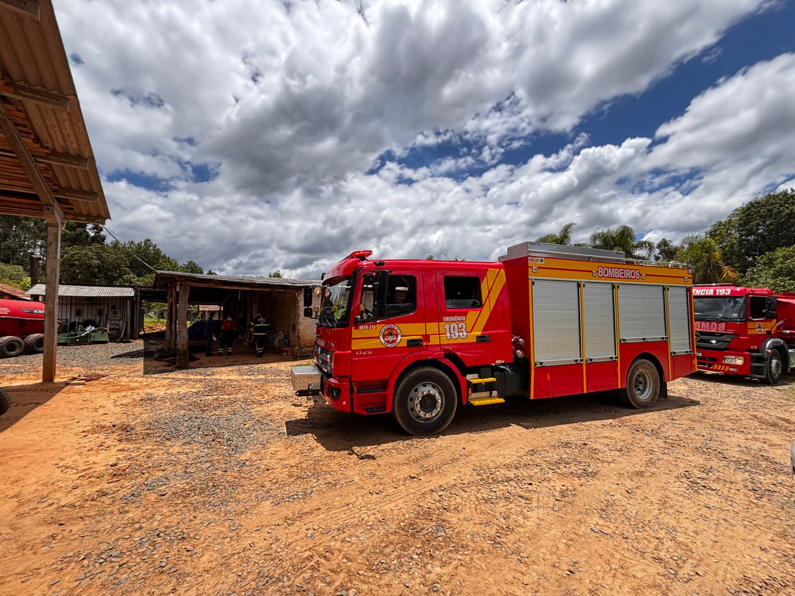 Por volta das 12h desta quarta-feira (21), após solicitação através da central de operações do Corpo de Bombeiros (Cobom), as guarnições das viaturas, auto bomba tanque e resgate, e auto bomba tanque, deslocaram-se até a localidade de Guarupu/Augusta Vitória, em Mafra, para atender um incêndio em uma estufa de secagem de fumo.