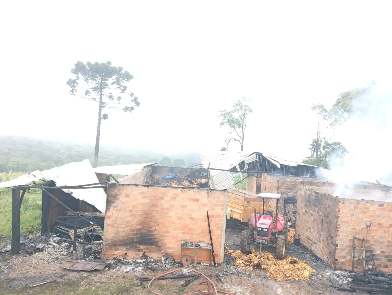 Para o local foi deslocado inicialmente uma unidade de combate a incêndio, e mais tarde uma segunda unidade de combate a incêndio, que ao chegar constataram que se tratava de um incêndio em uma edificação agropastoril, do tipo galpão multiuso, contendo três estufas de secagem de tabaco, paiol de armazenamento e garagem de maquinários.