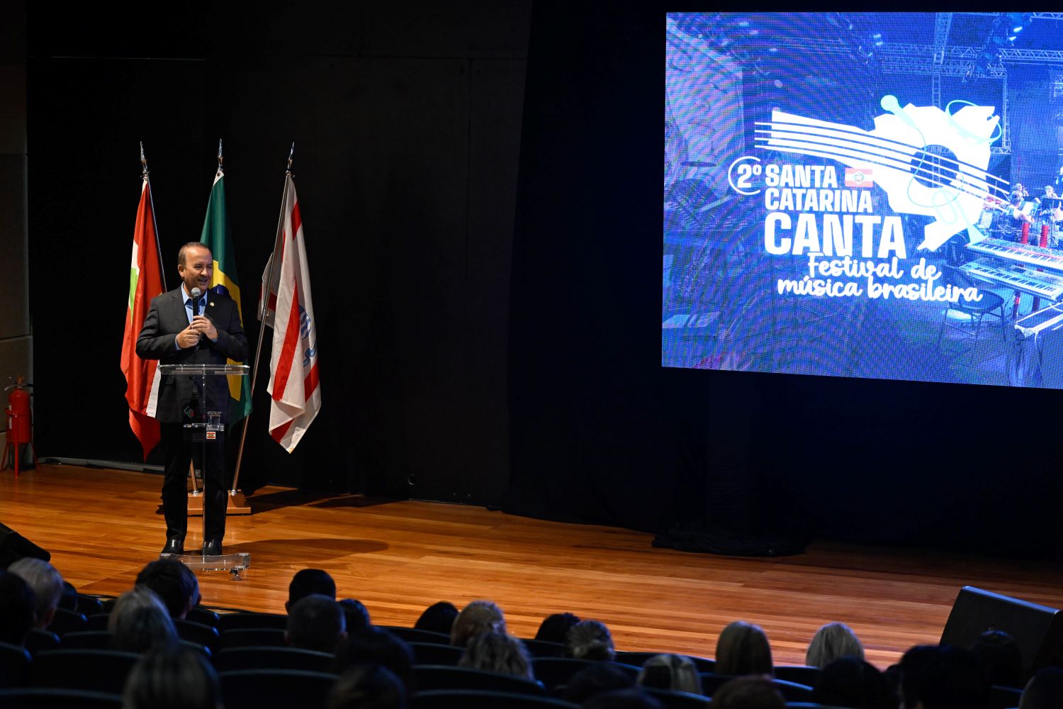 O Festival Santa Catarina Canta está de volta e em 2025 está maior. Com o tema Música Popular Brasileira, a edição deste ano foi lançada na manhã desta quarta-feira, 21, em Florianópolis, com a presença do governador Jorginho Mello. A sala de cinema do Centro Integrado de Cultura (CIC) ficou lotada de convidados e autoridades que conferiram em primeira mão, as novidades do festival para esse ano. As inscrições começam já nesta quarta-feira. O Festival estadual terá, na primeira etapa, 23 seletivas regionais e a grande final, prevista para o dia 9 de novembro, na capital catarinense.