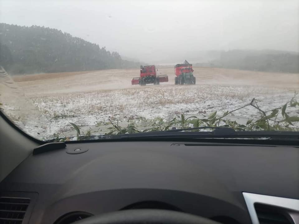 Assim como em Mafra (SC), segundo o proprietário Inidir Muller, “em três minutos [a chuva de granizo] acabou com tudo”.