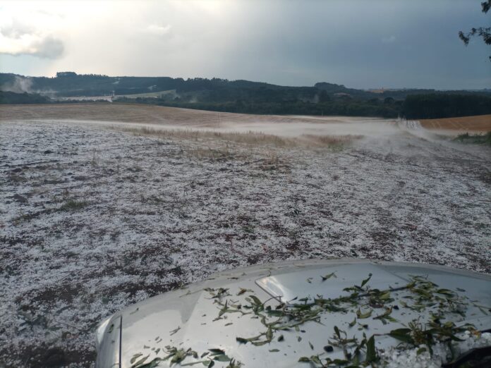 Assim como em Mafra (SC), segundo o proprietário Inidir Muller, “em três minutos [a chuva de granizo] acabou com tudo”.
