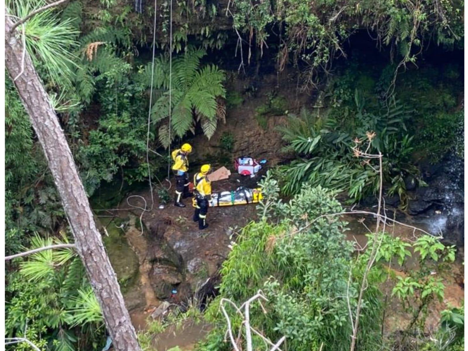 A vítima, um homem de 36 anos sofreu uma queda de aproximadamente 15 metros, durante um momento de desorientação enquanto caminhava dentro da mata fechada.