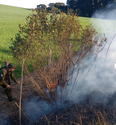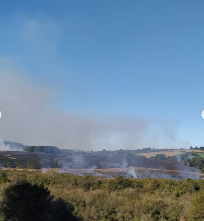 Nesta quarta-feira (13), durante um patrulhamento no Parque Estadual do Monge, a Polícia Ambiental identificou um incêndio de grandes proporções na região de Colônia São Carlos, no município da Lapa. O fogo, que atingiu uma área de cerca de 5 km de extensão, se espalhou rapidamente, afetando a vegetação nativa, matas ciliares e até mesmo a área de pastagem de uma fazenda.