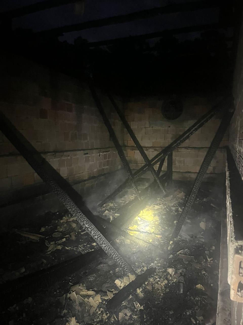 O telhado já havia colapsado, e havia duas outras estufas e um barracão ao lado, todas com risco de incêndio.