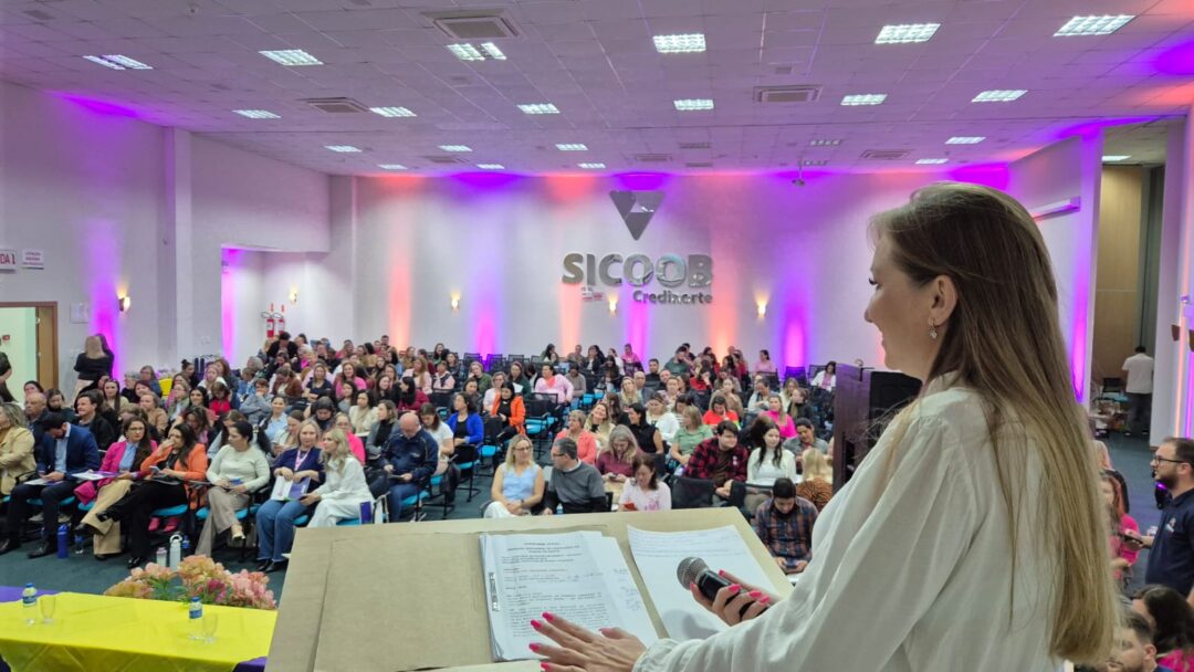 Na sequência, o público acompanhou o podcast ao vivo “Histórias de Emoção – Foca no Palco”, conduzido pela professora Cláudia Buss, com relatos inspiradores das convidadas Alci Terezinha Leite, Vanessa Zamaro Batista Sigrist e Joyce Zanetti Silva.
