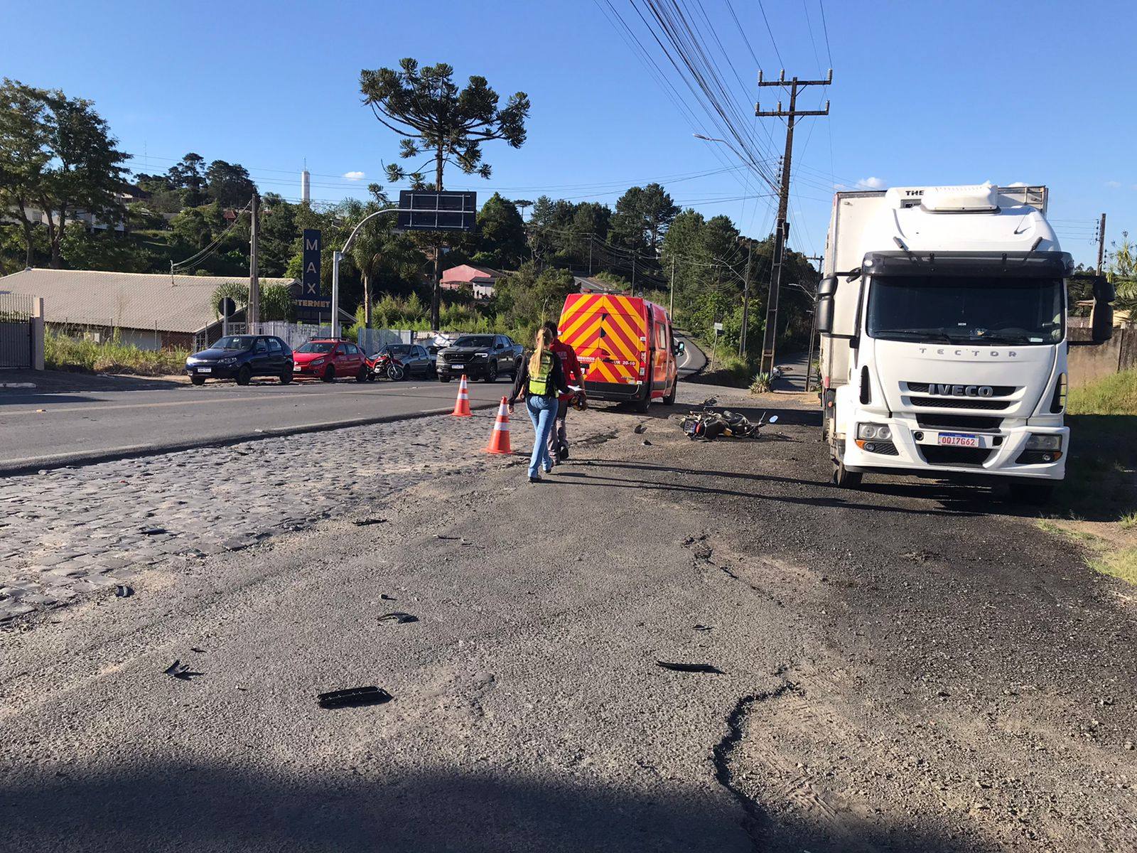 Já o motociclista, um homem de 23 anos, encontrava-se caído ao lado da via, decúbito dorsal, consciente e orientado, apresentando fratura exposta em um dos membros inferiores e hemorragia, sendo então realizados os procedimentos padrões e encaminhado ao P.A. do Hospital Santo Antônio de Itaiópolis.