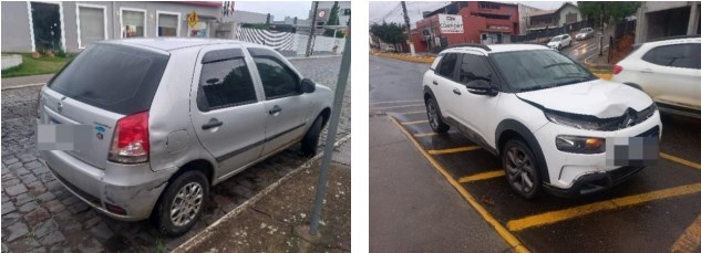 Os resultados foram danos na parte dianteira do Citroen e na parte lateral direita do Palio, não houve feridos.