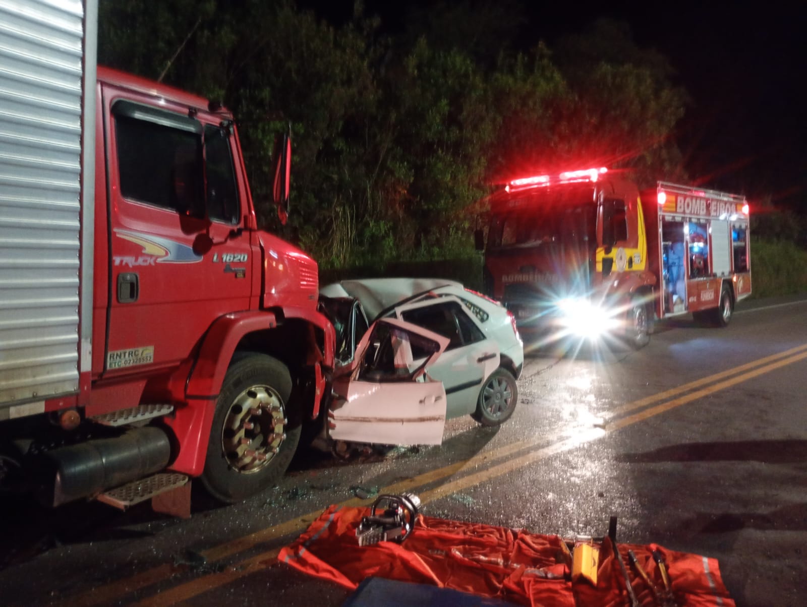 Por volta das 23h50 desta terça-feira (9), as guarnições do Corpo de Bombeiros deslocaram-se para atender um acidente de trânsito entre um carro e um caminhão, na Rodovia BR-280, Bairro Vista Alegre, em Rio Negrinho.