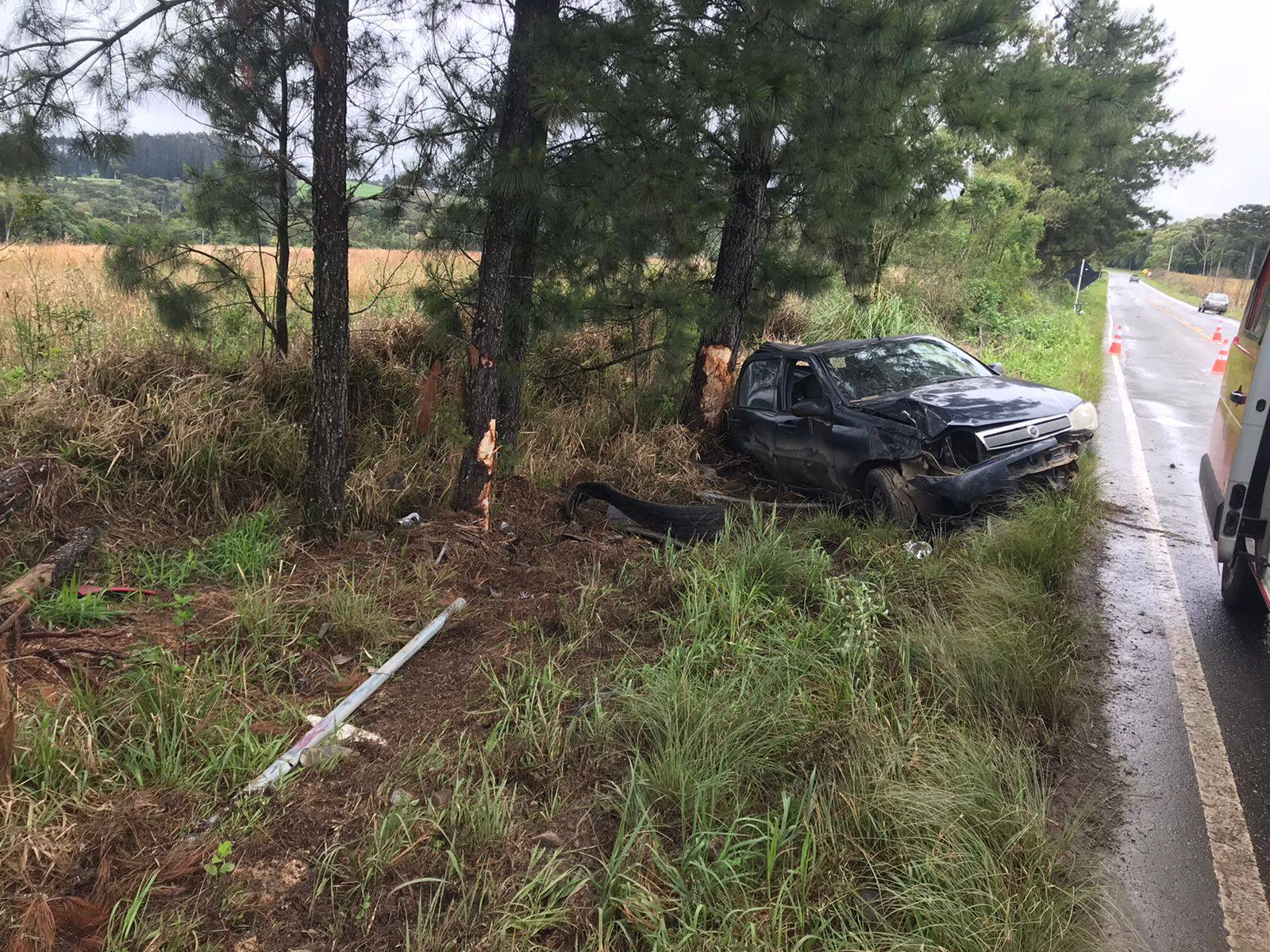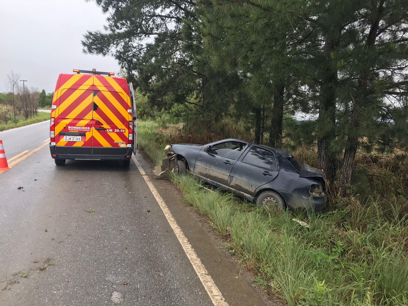Para o local foi deslocado o comboio de salvamento da corporação, composto por uma unidade de resgate e uma unidade de atendimento pré-hospitalar, que ao chegar constataram que se tratava de uma saída de pista seguida de colisão em uma árvore, de um veículo Fiat/Siena, cor preta, com placas de Curitiba/PR.