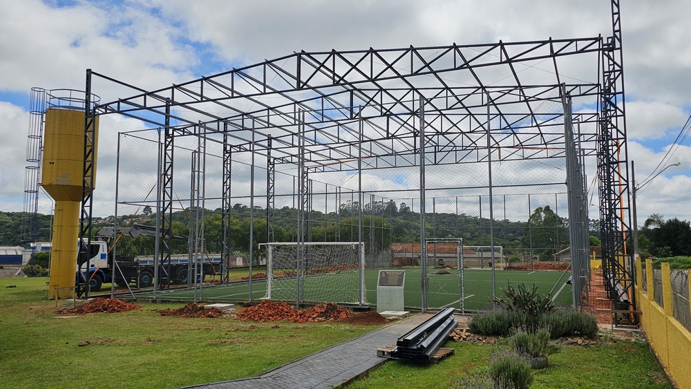 A Prefeitura de Rio Negro está investindo na colocação de uma estrutura metálica e posterior cobertura da quadra esportiva da Escola Municipal Mathias Augusto Bohn, algo aguardado há tempos pela comunidade escolar.
