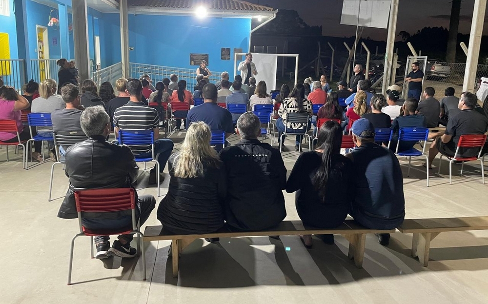 O encontro, que ocorreu na quadra de esportes da Escola Rural Municipal Eraldo Germano Plautz, teve a presença dos moradores interessados na criação de uma entidade representativa comunitária, com a finalidade de gerar o desenvolvimento do sistema de água na localidade. Também estiveram presentes o prefeito Alessandro Cristian von Linsingen; a secretária municipal de agricultura e meio ambiente, Djenifer Cristi Andreatta; a servidora da Prefeitura Flávia de Oliveira Braz Reiser e o coordenador da Sanepar, Roboão Senegaglia.