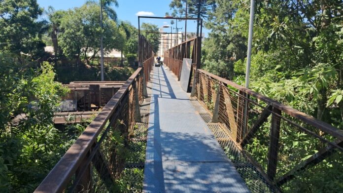 Chapas de aço xadrez foram adquiridas pela Secretaria Municipal de Obras para realização da manutenção. A colaboração da população é de grande importância para a preservação deste patrimônio público. A passarela está localizada sobre a linha férrea e é destinada para pedestres. O trânsito de motos, por exemplo, é proibido no local.