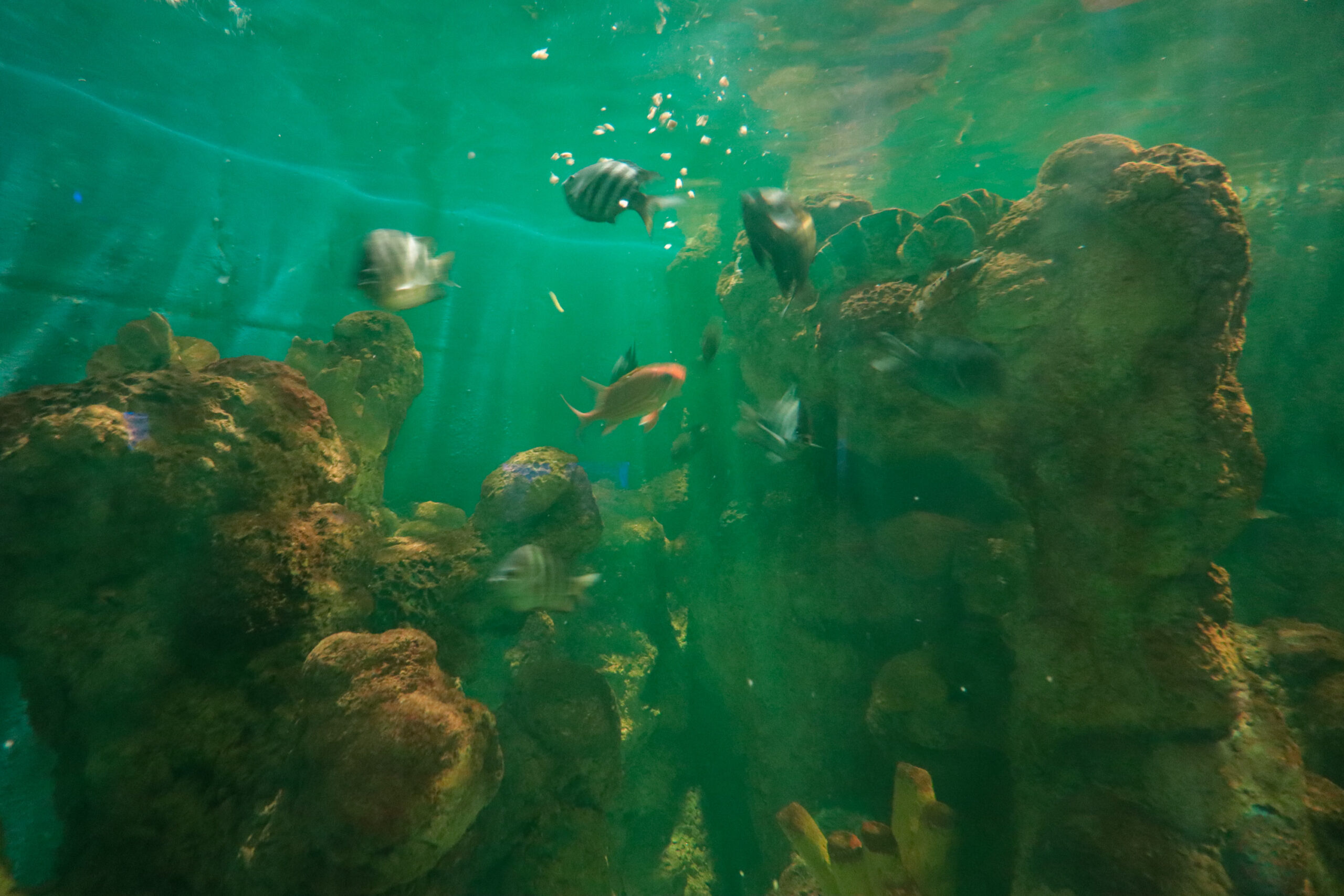 O espaço conta com 26 tanques, com peixes de várias espécies, tanto marinhos quanto de água doce. Ele simula ambientes presentes no Litoral do Paraná, como manguezal, recife de corais, praias arenosas e costão rochoso. Além dos peixes, tem também três pinguins-de-magalhães, resgatados no litoral de São Paulo, répteis e quelônios apreendidos pelo IAT, com cobras, jacaré, jabutis e outros animais.