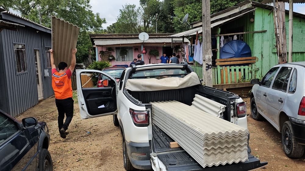 A Secretaria Municipal de Assistência Social realizou e continua realizando o cadastramento das famílias afetadas e o levantamento dos prejuízos causados. Hoje pela manhã a Defesa Civil iniciou a entrega de telhas de fibrocimento para as famílias que tiveram danos em suas residências e que já estão cadastradas.