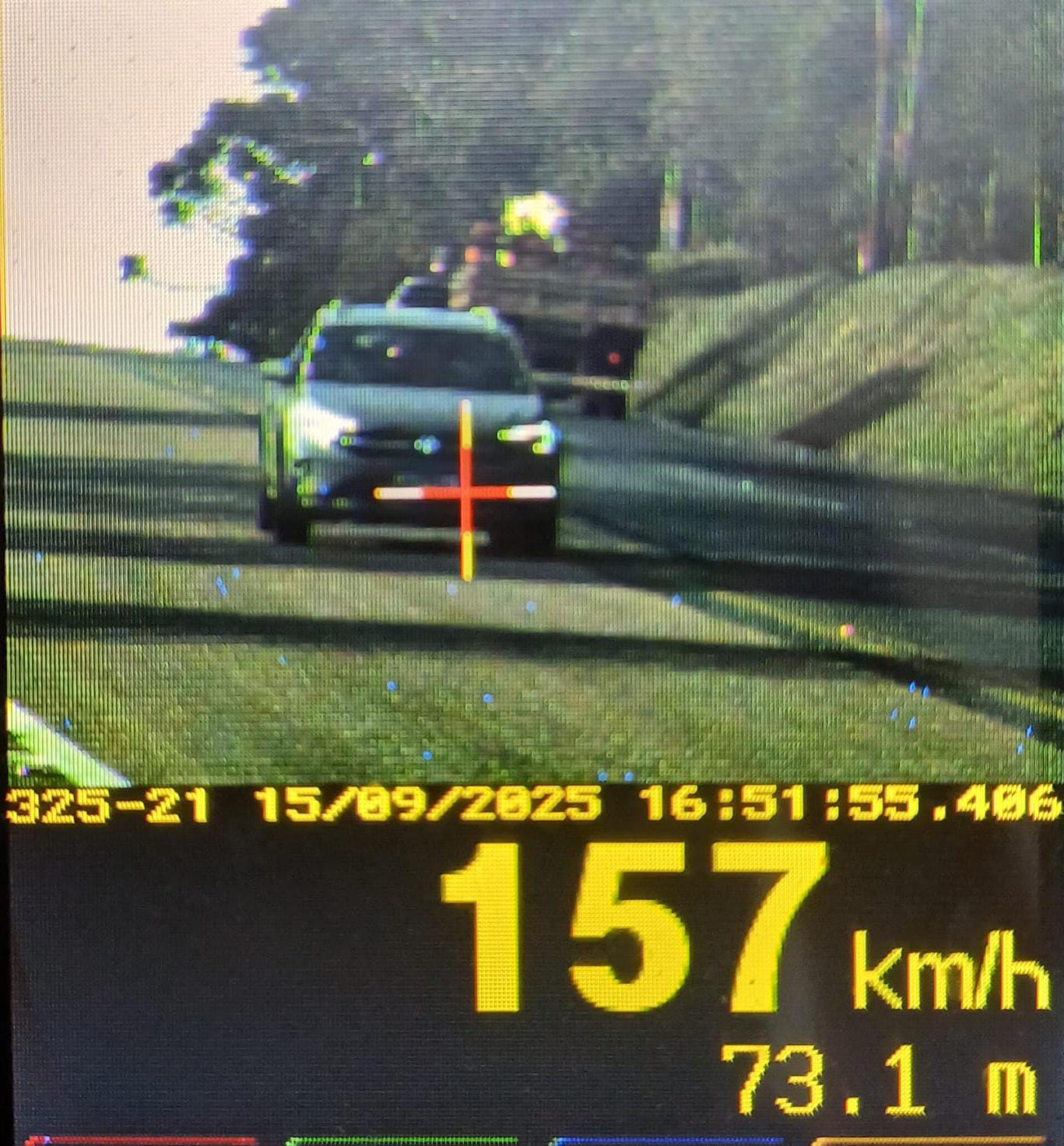 Destaque negativo para um automóvel fotografado a 157 km/h, quase o dobro do máximo permitido. Transitar acima de 50% da velocidade máxima é considerada infração gravíssima pelo CTB, prevista com multa de R$ 880,41 e suspensão da Carteira de Habilitação (CNH).