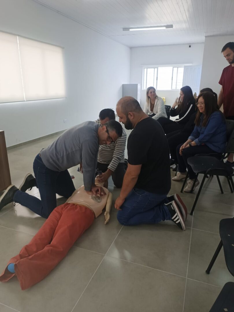 Durante o encontro, os participantes revisaram e praticaram técnicas fundamentais de primeiros socorros, como reanimação cardiopulmonar (RCP), manobras de desobstrução das vias aéreas e reconhecimento de parada cardiorrespiratória. As atividades reforçaram a importância de agir com segurança, agilidade e confiança diante de situações de emergência.