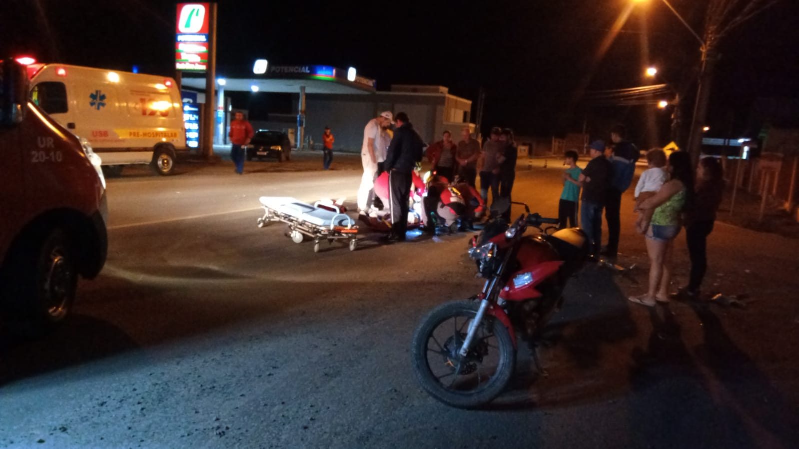 O condutor da motocicleta, um homem de 23 anos, encontrava-se em decúbito dorsal sobre a via de rolamento, amparado por populares, com suspeita de amputação de patela e fratura em região medial de membro inferior esquerdo, apresentando-se confuso, sinais vitais alterados e pupilas anisocóricas, sendo atendido no local e encaminhado ao Pronto Atendimento de Itaiópolis (P.A.).
