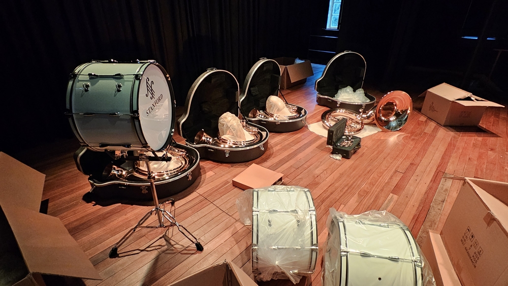 Entre os instrumentos profissionais adquiridos estão: bumbo, caixa tenor, eufônio, bombardino, flugelhorn, prato de marcha, quinto tom, sousafone, trombone de vara, trompa dupla e trompete.