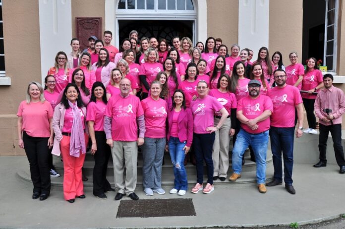 Servidores da Prefeitura de Rio Negro vestem rosa em apoio ao Outubro Rosa