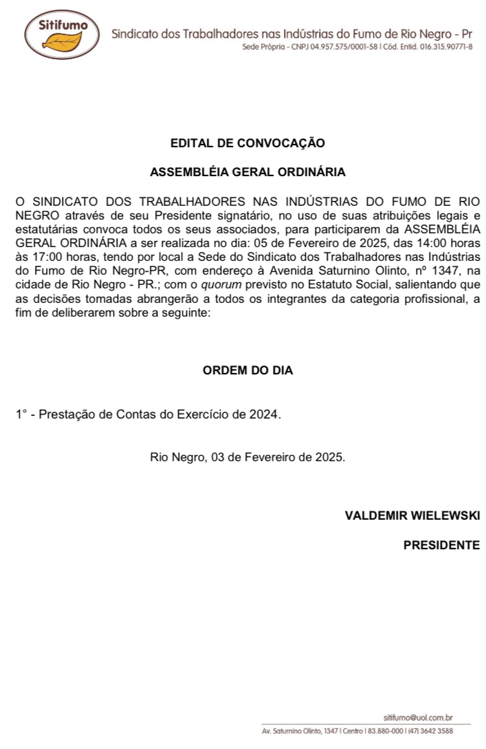 InícioPublicidade LegalSitifumo - Edital de Convocação - 03/02/2025 Publicidade Legal Sitifumo – Edital de Convocação – 03/02/2025 Compartilhado FacebookTwitterWhatsAppCopy URL 3 de fevereiro de 2025 Compartilhado FacebookTwitterWhatsAppCopy URL Artigo anteriorMoto com placa adulterada por fita adesiva é flagrada em MafraPróximo artigoIsenção do IPVA gera onda positiva entre entregadores e foco na manutenção das motos