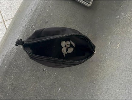 Em busca pessoal nenhum ilícito foi localizado, porém na vistoria na bolsa que havia dispensado foram localizadas 5 buchas de cocaína. Em entrevista aos policiais, ele relatou que está traficando.