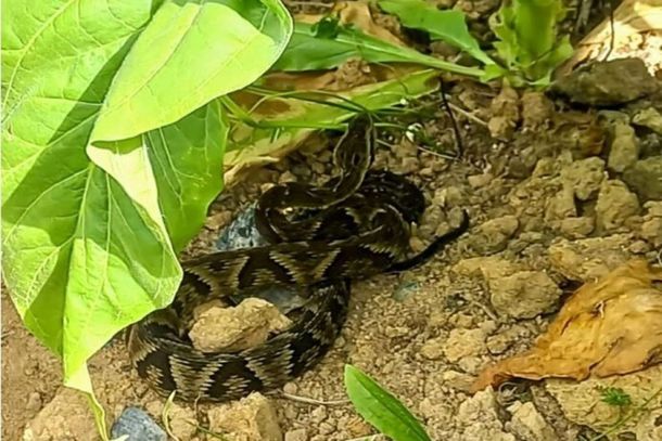 Ao chegar ao local, um homem, relatou que trabalhava na colheita de fumo quando foi surpreendido por uma Jararaca, que o picou no dorso do pé esquerdo.