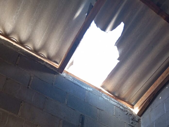 Por volta das 17h45 desta terça-feira (20), a guarnição do Corpo de Bombeiros Militar, foi acionada para atender uma ocorrência de queda de telhado, na Rua Dom Pedro I, Bairro Polati, em Matos Costa.