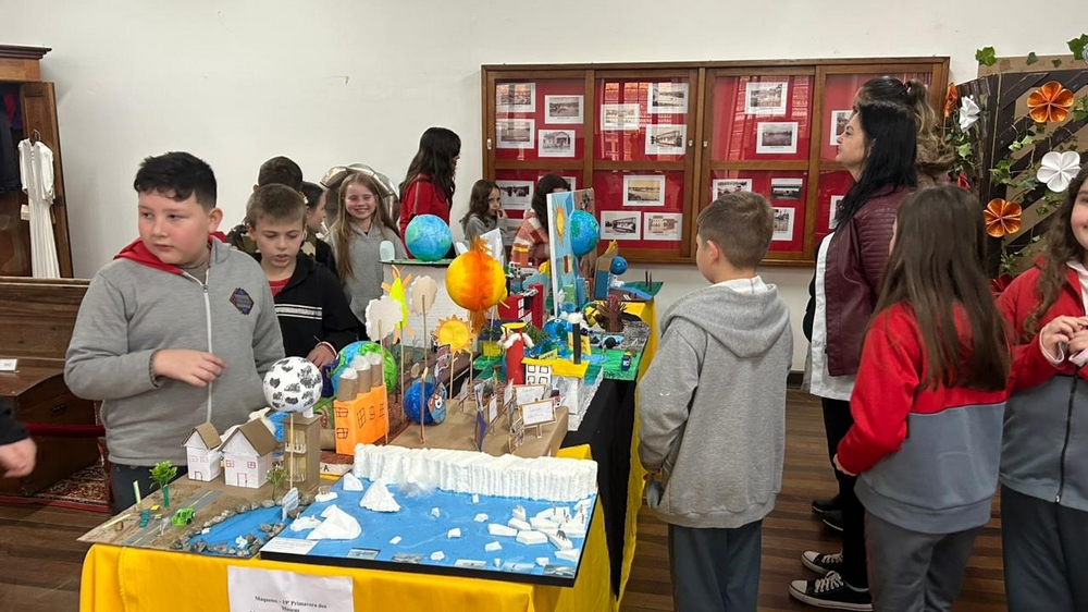 As atividades foram variadas e envolventes durante o evento de abertura da exposição. A turma do 4º ano da Escola Municipal Vereador Ricardo Nentwig participou da criação de maquetes, mostrando de forma criativa como as mudanças climáticas impactam o planeta e como podemos agir para minimizar esses efeitos.